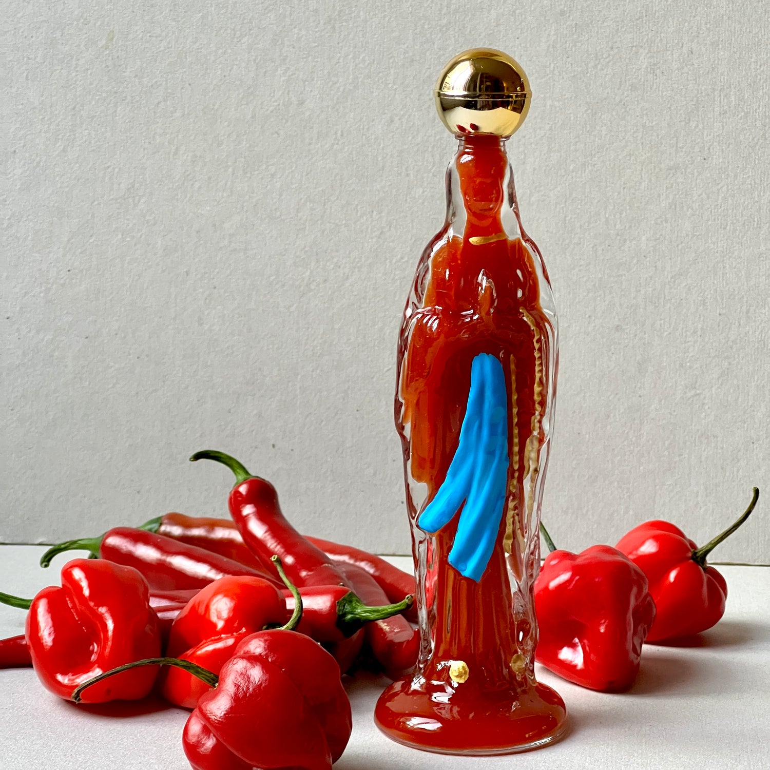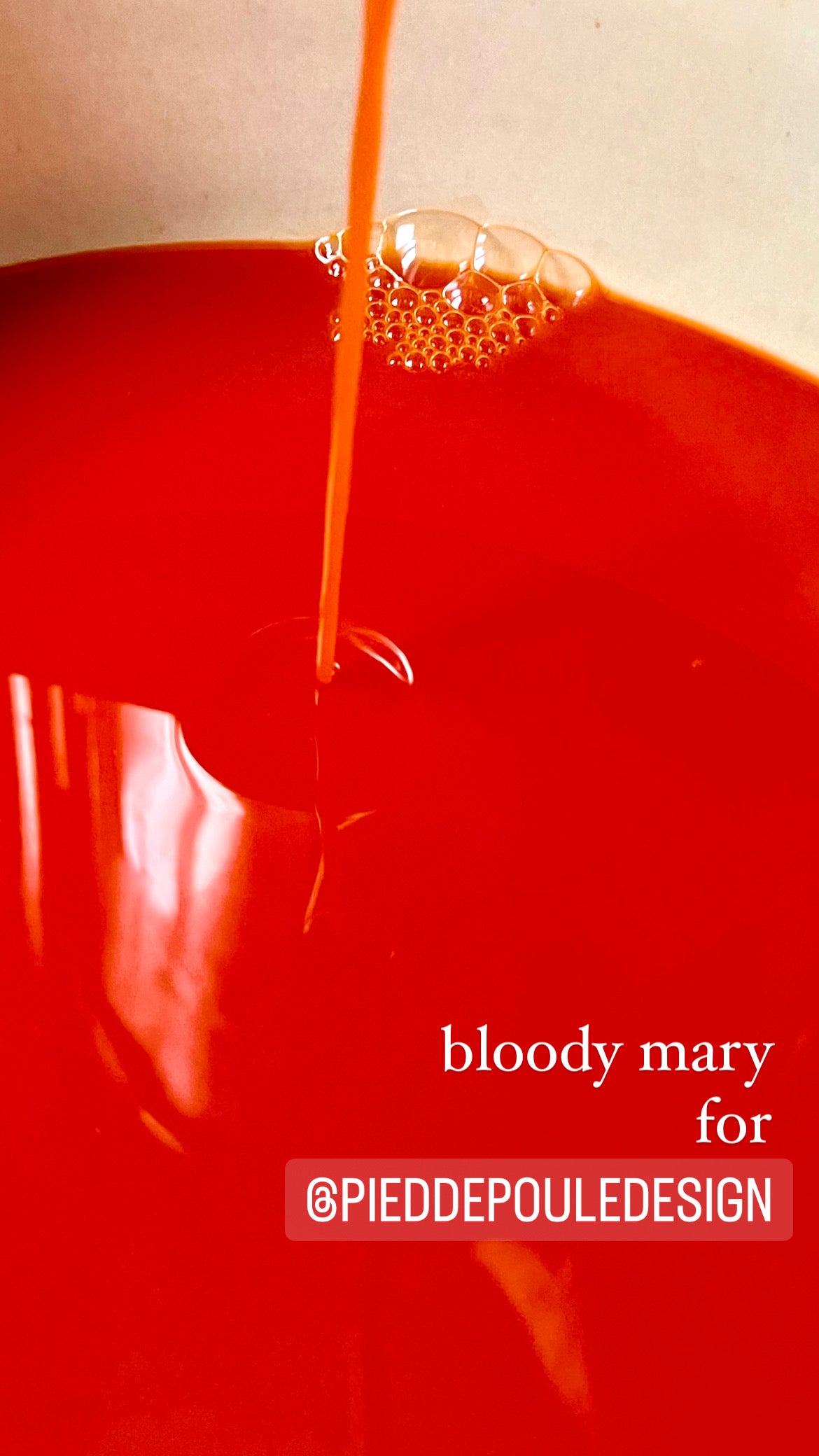 "Bloody Mary" est filtrée pour créer un liquide lisse et léger adapté à la bouteille “sacrée” au petit bouchon. Elle reste vivante et acidulée.